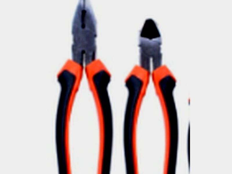 Herramienta de agarre y corte con dos mangos y cabezas articuladas.