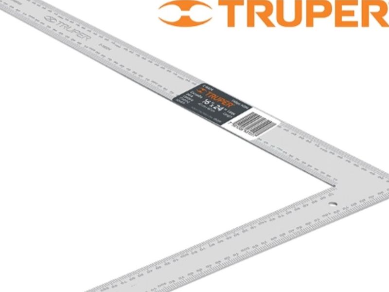 ESCUADRA CARPINTERO “TRUPER” CON GRADUACION ESTAMPADA EN ACERO. Cantos rectificados que permiten tener una desviación máxima de 0.18 mm.
