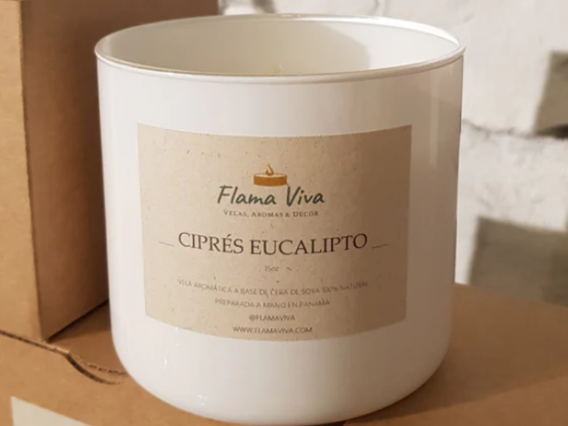 Vela aromatica a base de cera de soya, preparada a mano en Panamá.
