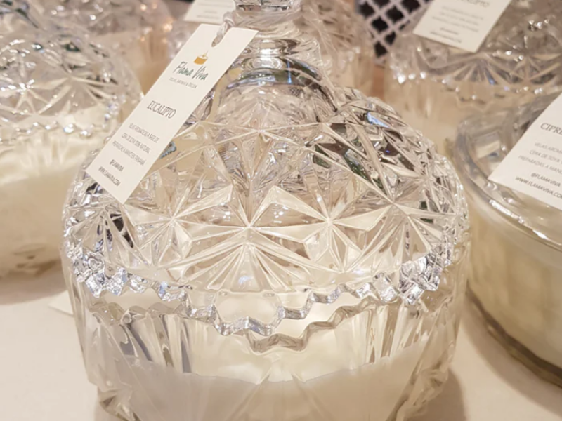 Vela Caixa, envase de cristal con tapa en tamaño XL.