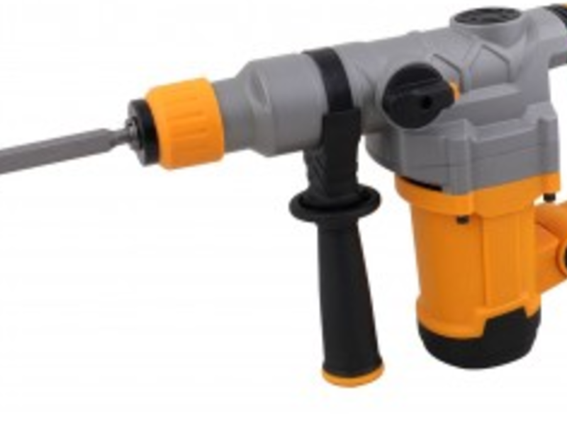 Rotomartillo 1200W Voltaje / Frecuencia: 110-120v ~ 50/60 entrada de energía: 1200w Velocidad sin carga: 940r / min Impacto nominal: 4800 / min hormigón / acero / madera :: 30 mm / 16 mm / 40 mm Taladro percutor / martillo de 2 funciones Taladro SDS Plus de 8/10/12 * 150 mm, dos cinceles: cincel plano / puntiagudo 14 * 250 Taza de grasa 1pc Carbono 1pc Enchufe VDE con cable de 2 m Embalaje: BMC + etiqueta de color "