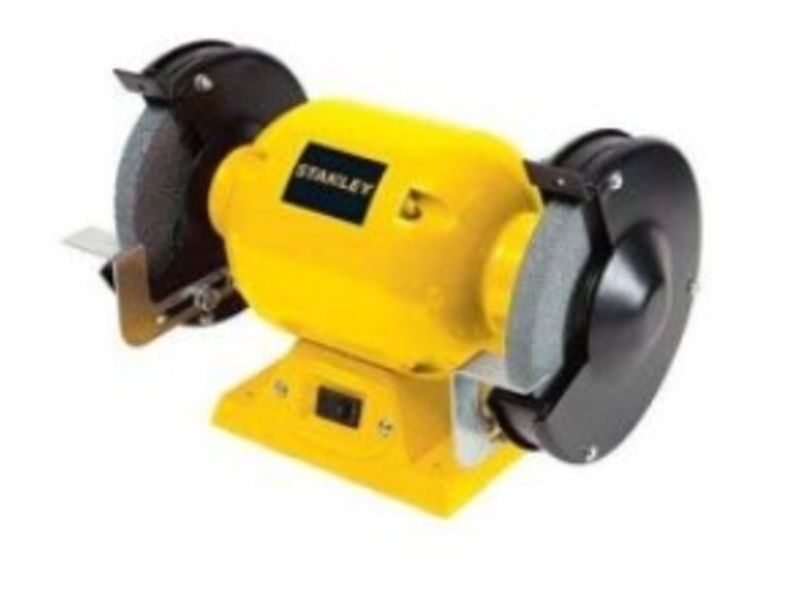 ESMERIL BANCO 1/2 HP STANLEY. Acepta Discos para Pulir y de Alambre. Base de Acero Robusta con Monturas de Goma. Potencia 373W. Velocidad sin carga 38450min (rpm)
