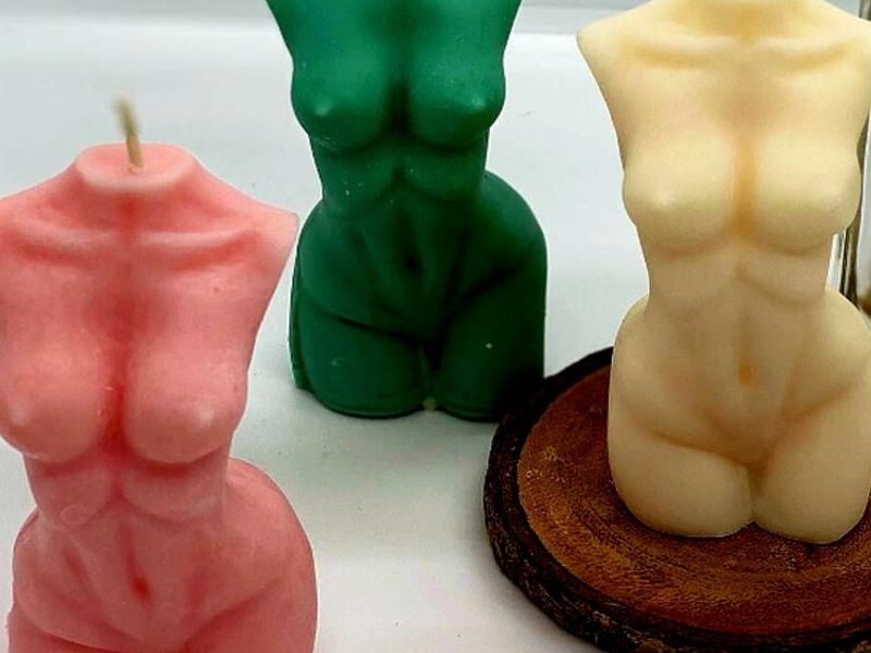 Velas diseñadas con la forma estilizada de una figura femenina, añadiendo un toque artístico y decorativo.